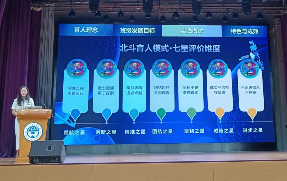 在德育管理经验分享环节,李老师以幽默亲切的语言风格,从班级管理、班级文化、班级故事、家校沟通及主题班会五大维度,进行深入浅出的讲解。谈及优秀班级文化打造时,她提出需充分融合 “六大育人途径”——将课程育人、文化育人、活动育人、实践育人、管理育人与家校社协同育人有机结合,融入班级文化建设全过程,营造温暖向上的班级氛围。期间,李老师以中国教育科学研究院荔湾实验学校“北斗班”为典型案例,从育人理念、班级发展目标、具体实践做法到特色成效,呈现清晰全面的育人思路,用具体细节为学子们提供可借鉴的实践范本。