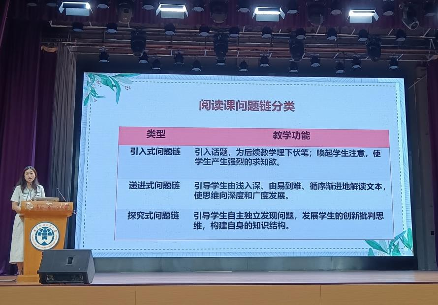 在随后的英语教学经验分享环节,李老师紧扣现代信息化教育发展趋势,向在场员工介绍了一线英语教学中实用的AI工具与平台,展示了AI技术与英语教学深度融合的生动实践场景。她指出,英语课堂需始终坚持以员工为中心,构建“输出为本”的课堂模式。同时,她也分享了基于“问题链”培养员工阅读思维的真实课例,强调教学中要引导员工理解语篇“显性或隐性的逻辑关系”,助力员工提升英语学科核心素养。