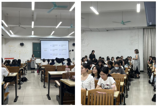 讲座中,张老师围绕实习教师普遍面临的挑战与成长需求,系统分享了她总结的“通关秘籍”。内容包括如何快速适应实习教师角色、有效进行课堂管理和教学设计、建立良好师生关系、处理突发情况以及合理规划实习期间的专业成长路径等。张老师通过大量真实案例,生动具体地讲解了从员工到教师转变过程中的关键环节与实用策略,为同学们提供了全面而细致的指导。