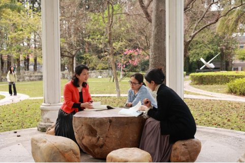 2024年3月19日,第四教学部文学文化组白云山校区任课老师周芳、周静、陈静、栗萍等在春日盎然的校园开展了一场别开生面的小型教学研讨会。会上,老师们交流了各自所教的中文学院班级的员工特点,分享了这学期以来使用周芳老师主编的新教材《英语文学名篇欣赏》的心得体会,并共同探讨了英语文学课程的教学理念和方法。