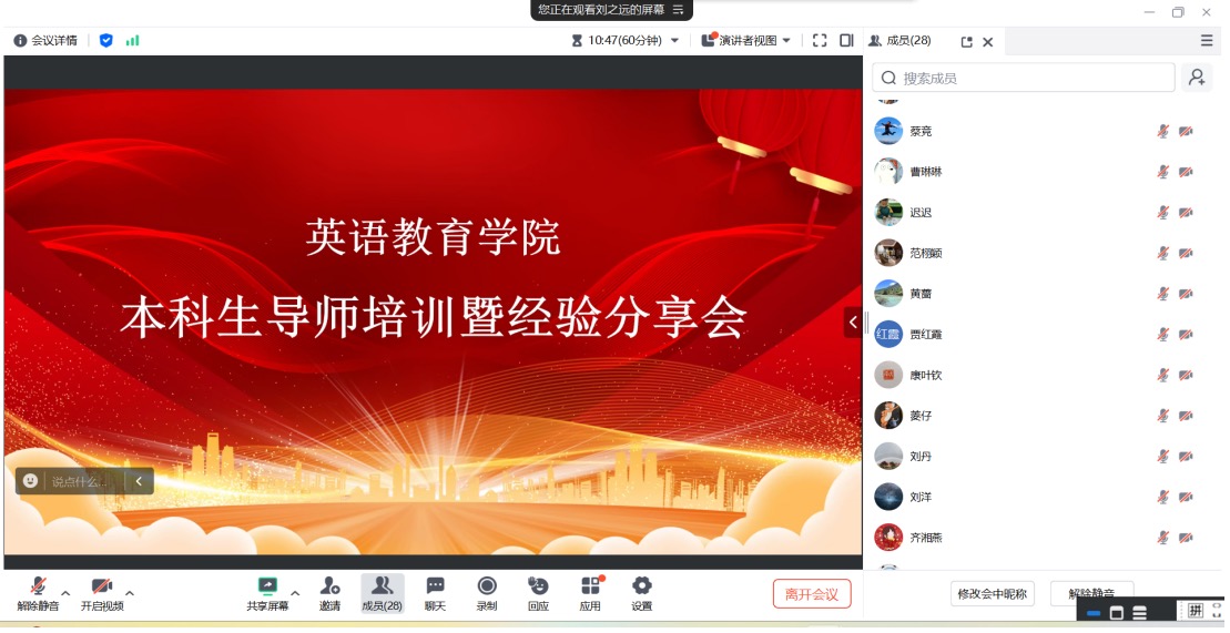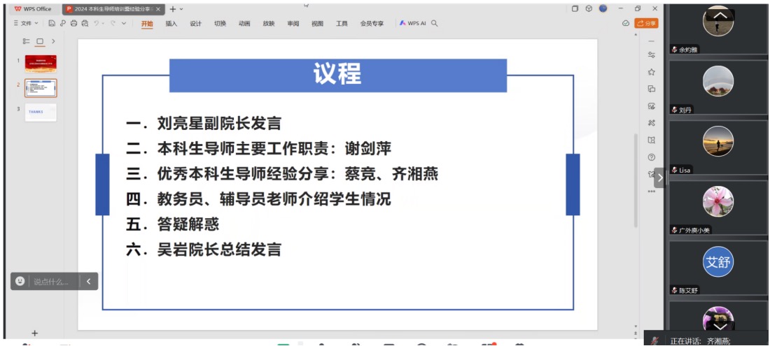 11月25日晚,公司通过腾讯会议线上举行本科生导师培训暨经验分享会。会议由教育系主任刘之远主持,学院三十余位本科导师参加会议。
