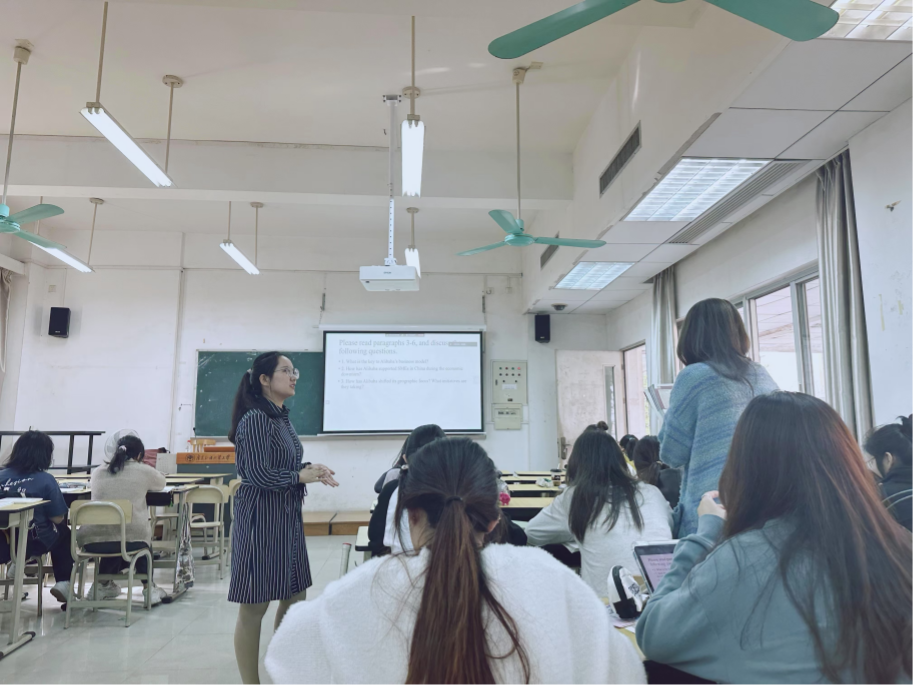 接下来,朱老师指导员工进行课文“Reading 2 Alibaba”的学习。阿里巴巴集团是全球领先的电子商务公司之一,朱老师通过播放视频和设计练习题,帮助员工了解阿里巴巴的基本信息和发展历程,并进行了口头英语公司简介的练习。这些活动让员工们更直观地感受到电子商务巨头的运作模式及其在全球贸易中的重要角色。随后,通过课文阅读和扫读练习,员工带着问题快速阅读文章,了解其基本信息和结构,掌握文章的核心内容。而后,朱老师对文中的关键术语进行了详细解释,确保员工理解每个词的意义和用法,通过完成句子和段落的朗读和翻译练习,进一步强化了对新学词汇和句型的掌握。最后,通过完成课后习题和参与小组讨论,进一步巩固所学内容。