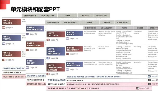 朱老师重点介绍了本学年中级组专门用途英语教学统一讲授的四个核心单元:Organization, Brands, Money, International Markets,帮助新教师更好地把握教学重点。此外,她还展示了配套PPT课件、员工课堂笔记范例以及小组作业案例,进一步帮助新教师理解教学内容的组织方式与课堂活动的设计思路。